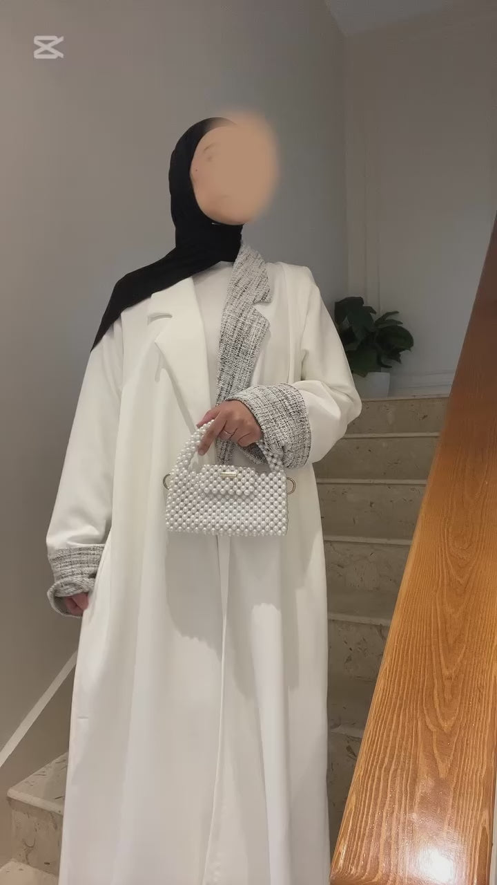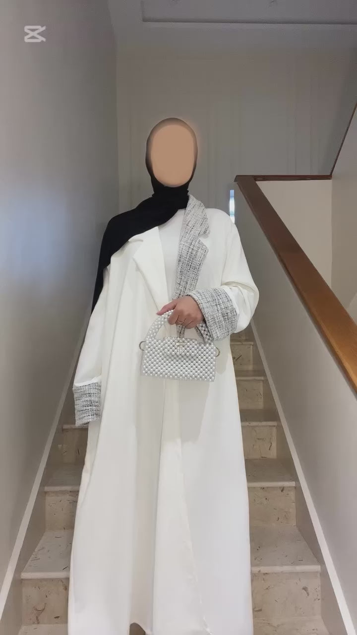 • Chic tweed accents on the lapel and cuffs for a sophisticated touch