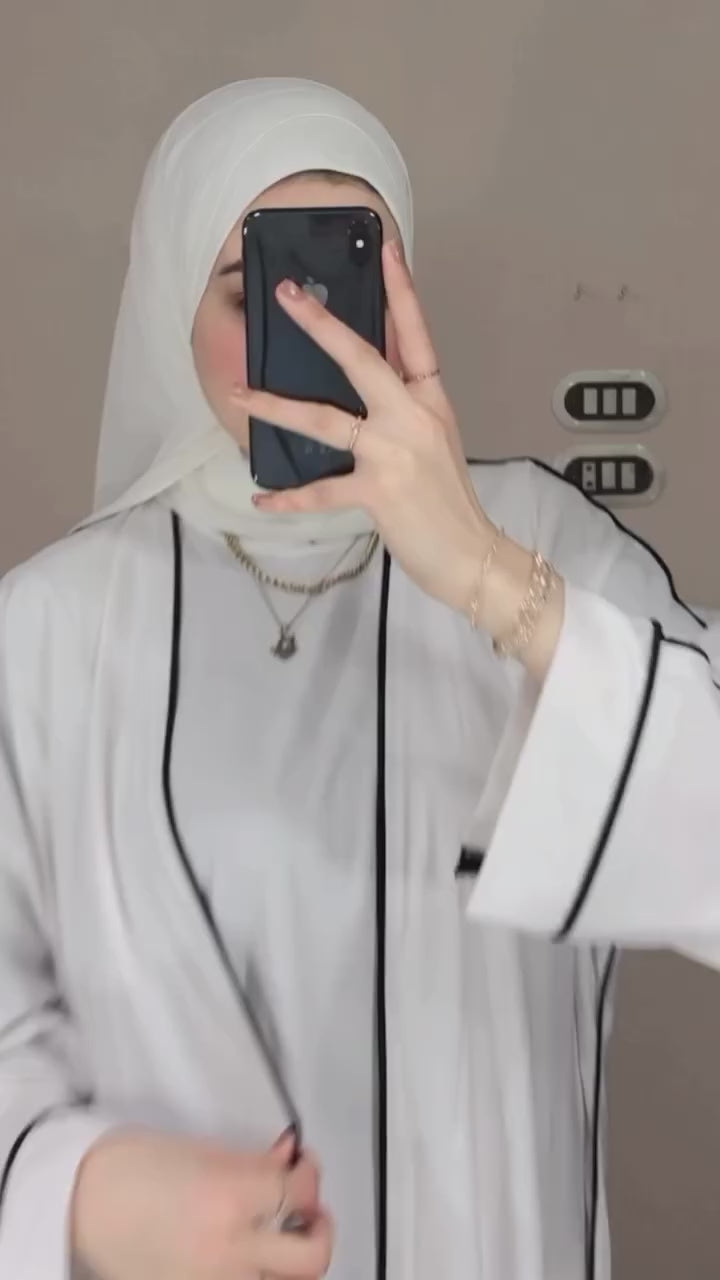 Step into timeless elegance with this stunning white abaya set, crafted from luxurious double georgette fabric for a soft and flowing silhouette. The sleek black piping adds a touch of contrast and modern flair, making it perfect for both everyday wear and special occasions. This two-piece set includes a matching inner dress, providing full coverage and comfort without compromising style. Pair it with your favorite accessories for a refined and graceful look.