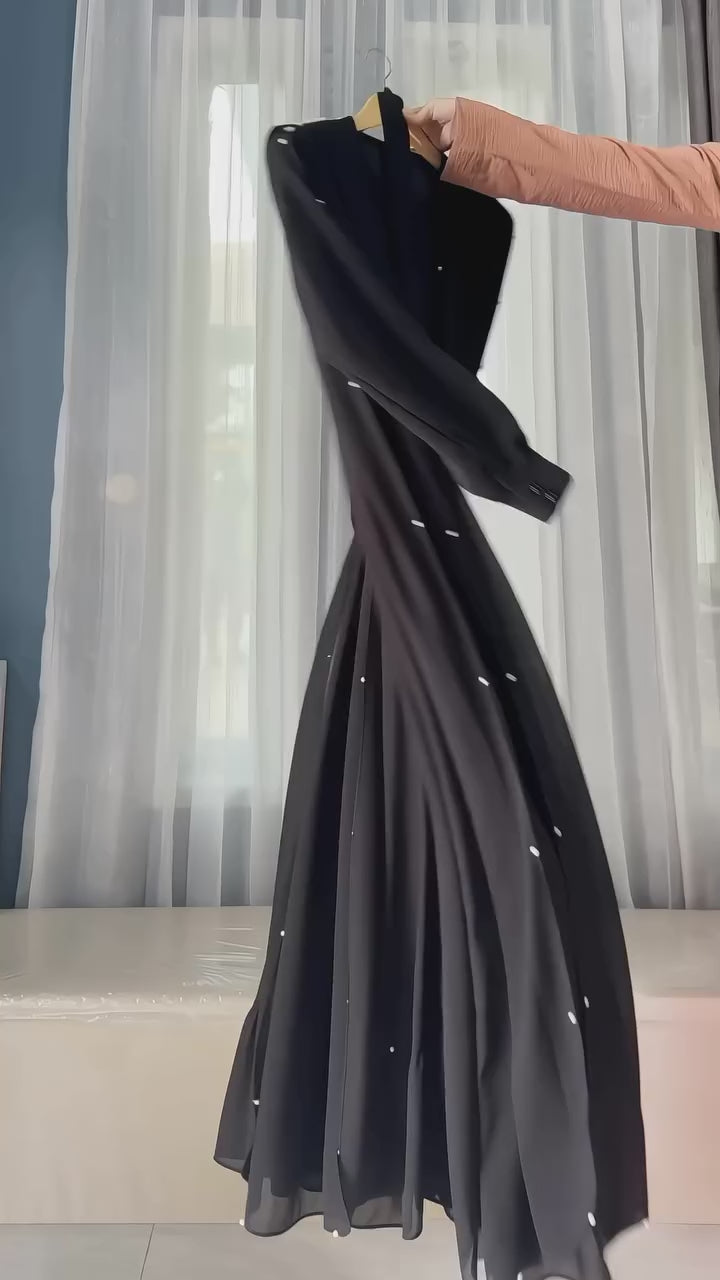 Pearl-Embellished Flared Abaya