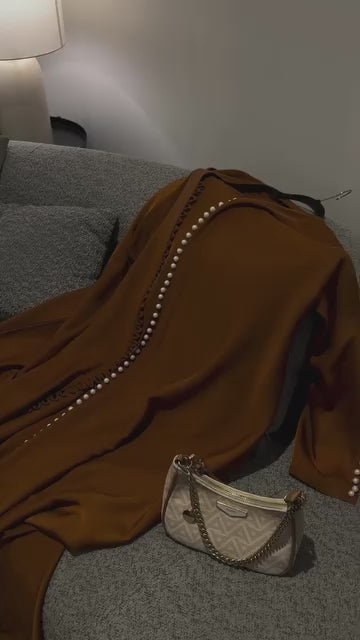 Add a touch of elegance to your wardrobe with our Pearl Button down Gown. Made from premium double georgette, this gown features intricate pearl detailing along the edges. The flowy silhouette and luxurious finish make it perfect for any occasion. Gown only.