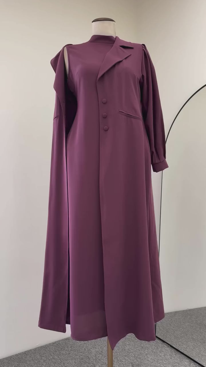 Elevate your wardrobe with this sophisticated double georgette gown set, designed for effortless elegance. The structured gown features a tailored lapel collar, button details, and a unique sleeve cutout for a contemporary touch. Paired with a sleek inner, this versatile ensemble is perfect for formal occasions or stylish layering. Available in multiple colors.