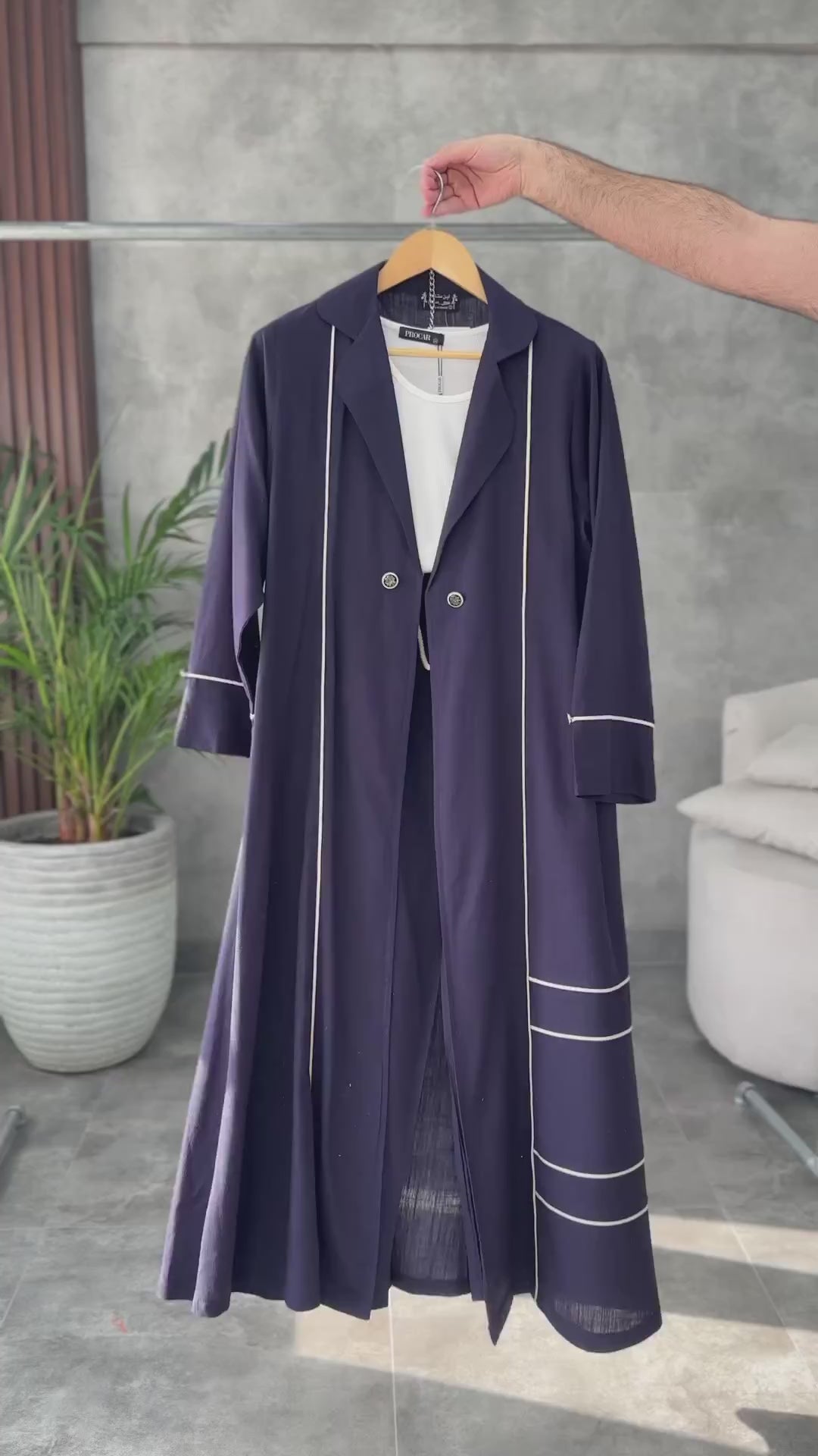 This elegant three-piece set features a breathable wash n wear fabric, perfect for effortless styling. The long gown is accented with subtle piping details, while the coordinating shirt and trousers provide a polished yet comfortable fit. Ideal for both casual and formal occasions.
