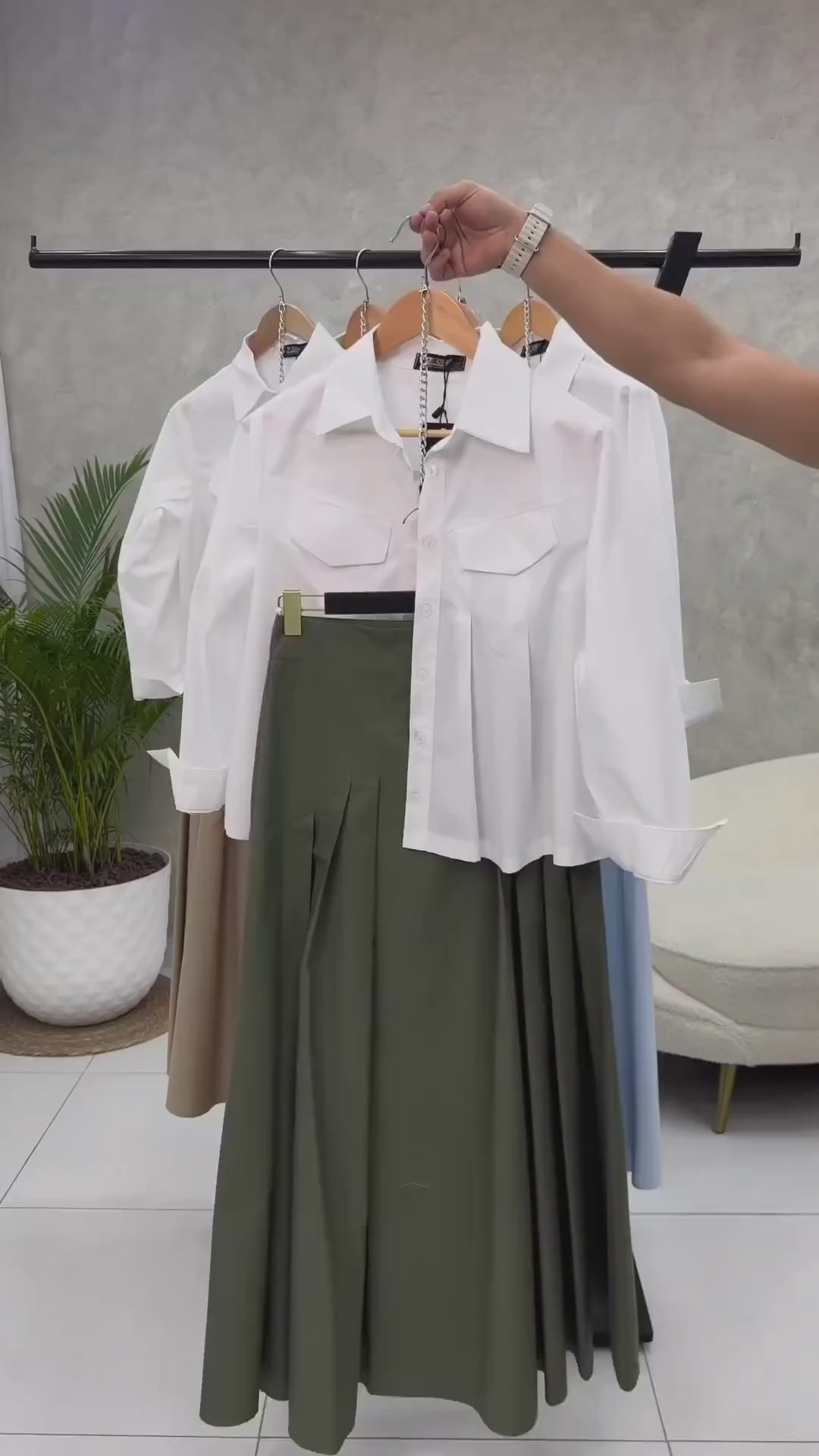 Elevate your wardrobe with this effortlessly chic cotton shirt and pleated skirt set. The crisp white button-down shirt features structured pockets and a tailored fit, while the flowy pleated skirt adds a touch of femininity and movement. Available in multiple colors, this versatile duo is perfect for both casual and formal occasions.