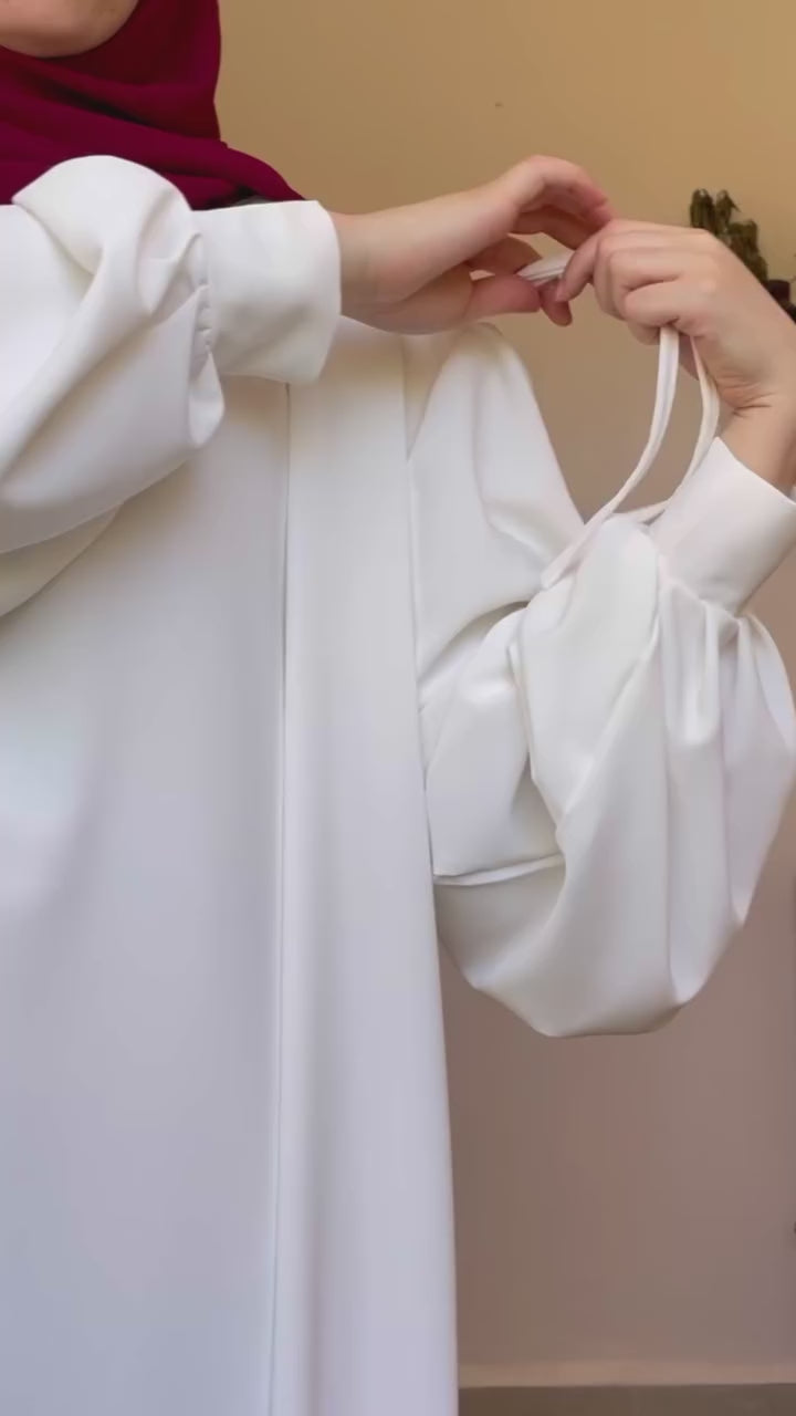 This elegant double georgette abaya features delicate bow accents on the shoulders and a soft, flowy silhouette. A timeless choice for any occasion.