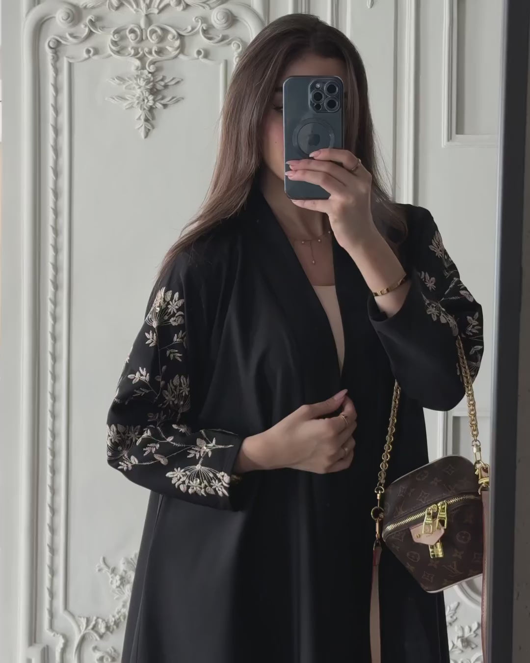 This sophisticated three-piece set, crafted from premium double georgette, features a beautifully embroidered gown, a sleek shirt, and tailored trousers. The intricate floral embroidery on the sleeves adds a touch of elegance, making it perfect for both formal and casual occasions. Lightweight, breathable, and available in multiple colors.