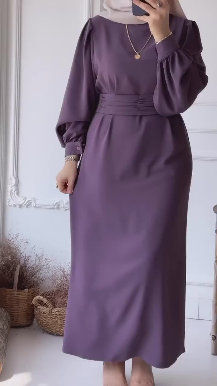 Designed for effortless sophistication, this abaya is crafted from luxurious double georgette fabric. Featuring a flattering cinched waist, puffed sleeves, and delicate buttoned cuffs, it offers a sleek and graceful silhouette. Perfect for formal and everyday wear, this timeless piece blends style with comfort.