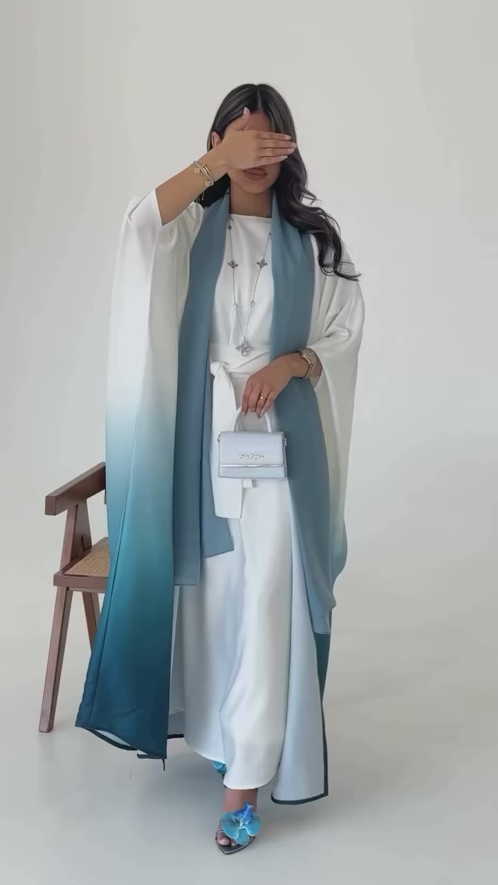A stunning two-piece set featuring a gradient ombre gown paired with a sleek inner dress. The flowing silhouette and soft hues create an effortlessly chic look, perfect for both day and evening occasions.