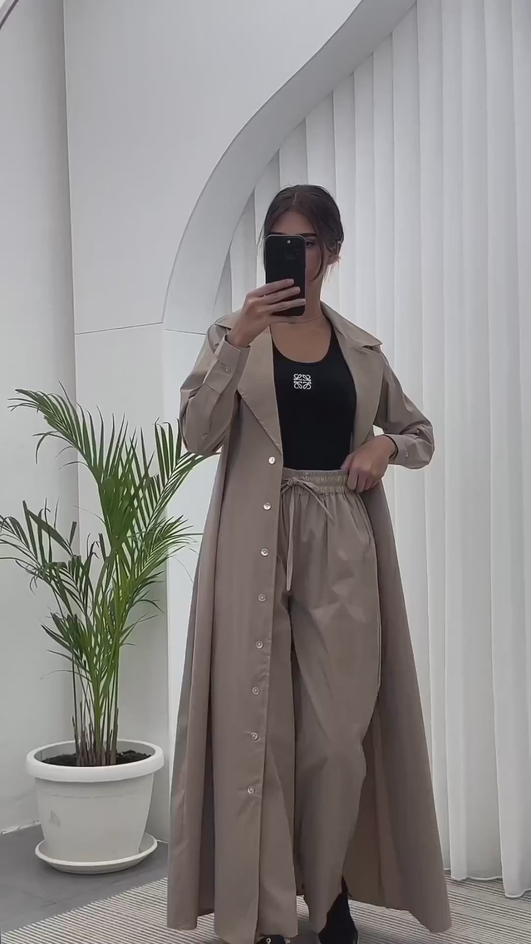 Elevate your everyday wardrobe with this effortlessly chic cotton gown and trousers set. Featuring a tailored long gown with a sleek collar and rolled-up sleeves, paired with comfortable trousers for a refined yet relaxed look. Perfect for versatile styling and all-day wear.